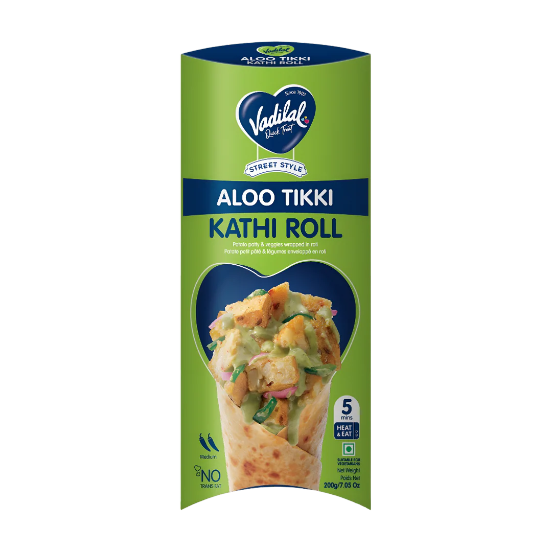 Savor the crispy, spicy goodness of Vadilal Aloo Tikki Kathi Roll 200g – a convenient, ready-to-eat treat for snacks, meals, or on-the-go.