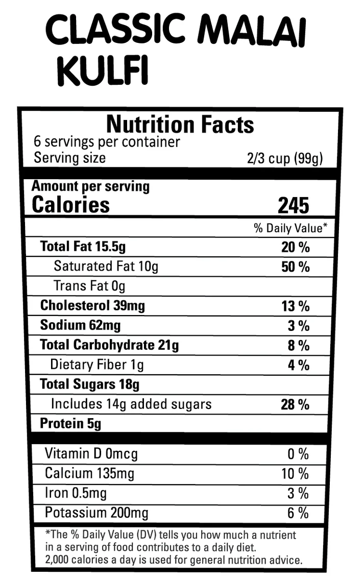 Experience the timeless taste of India with our Classic Malai Kulfi. Prepared using pure full-cream milk and slow-cooked to perfection, this kulfi carries the rich essence of malai (milk cream) with a smooth, velvety texture. Each bite melts in your mouth, bringing back the nostalgia of traditional Indian kulfi enjoyed during festivals and family gatherings. Perfect as a dessert after meals or a refreshing treat on warm days, this kulfi captures authentic flavors with no compromise on quality.