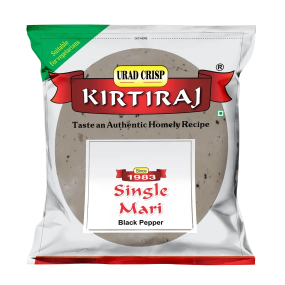 Delicate in taste yet full of crunch, Kirtiraj Papad Single Mari is the perfect papad for everyday meals. Infused with subtle notes of black pepper (single mari), it delivers a gentle warmth without overpowering flavors. Loved by families across generations, this papad is best enjoyed roasted, fried, or crumbled into your favorite dishes. A true classic that never goes out of style.